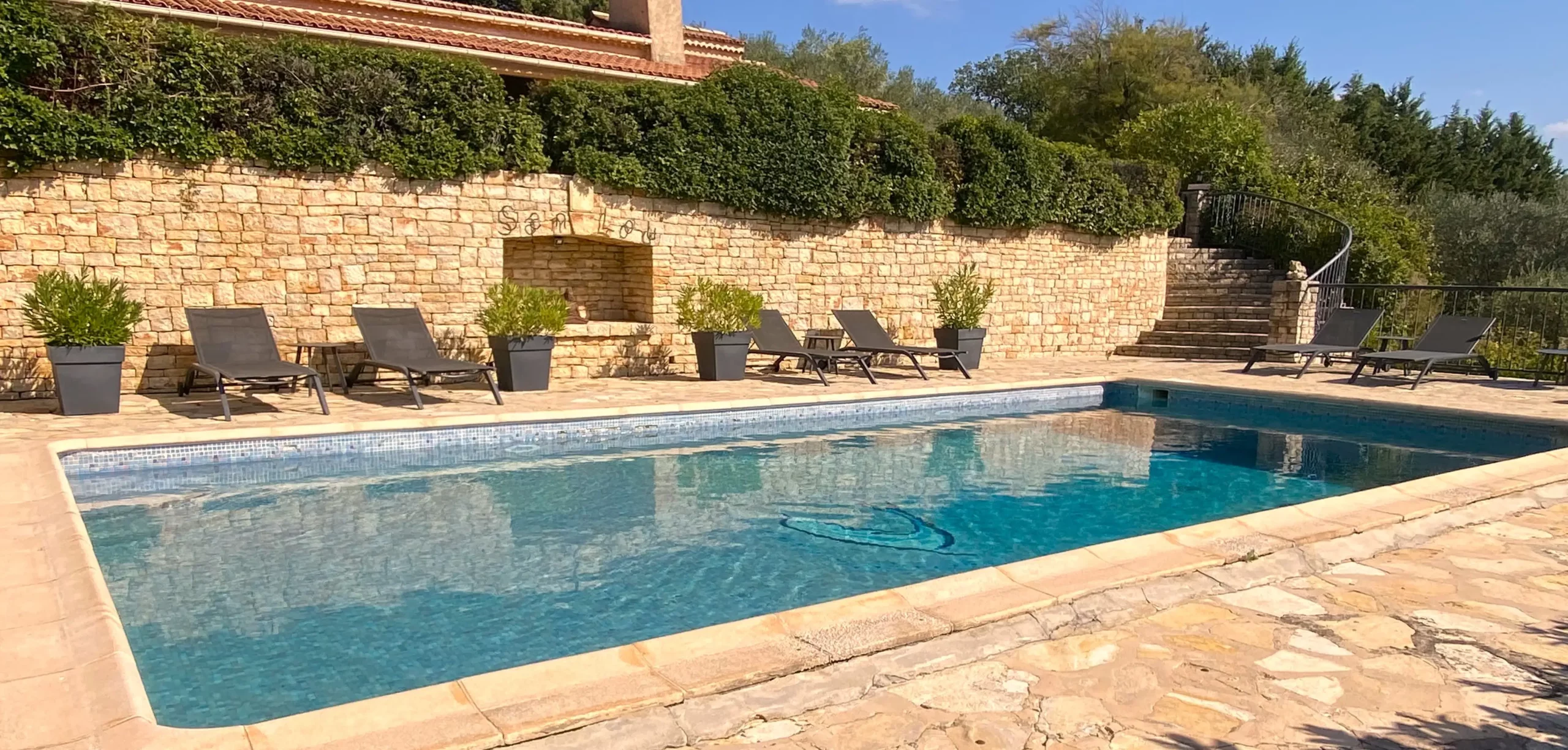 Balinese-inspired Provencal farmhouse, hidden away in an estate of pine and olive trees. Bordered by the Var vineyards, 10×5m pool with breathtaking views.